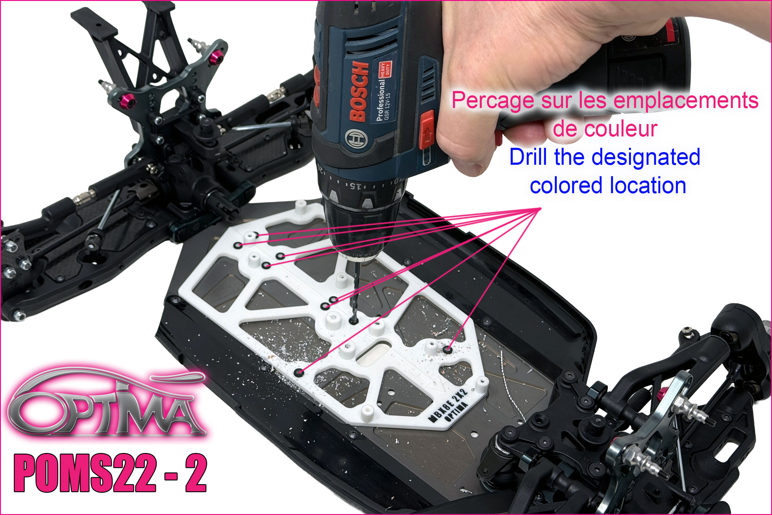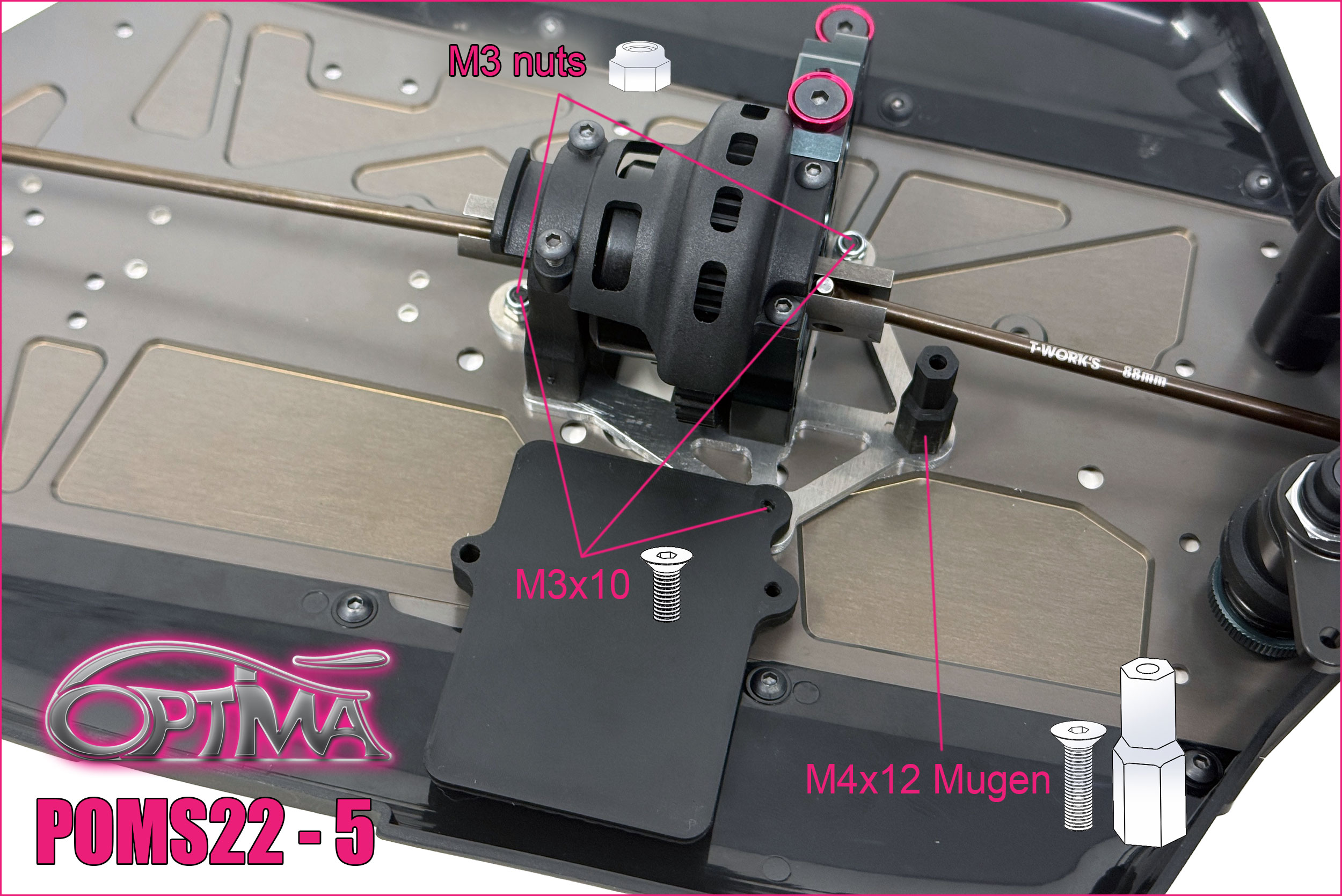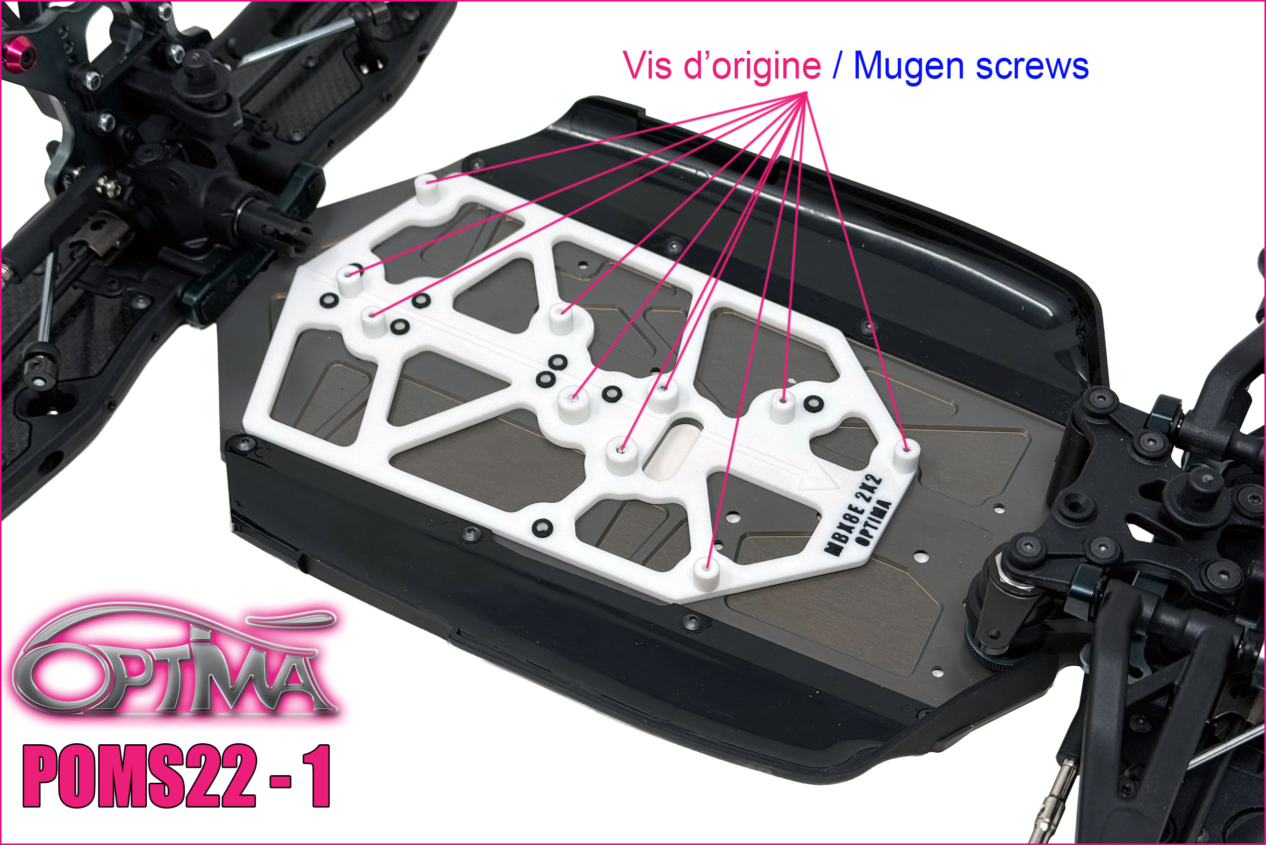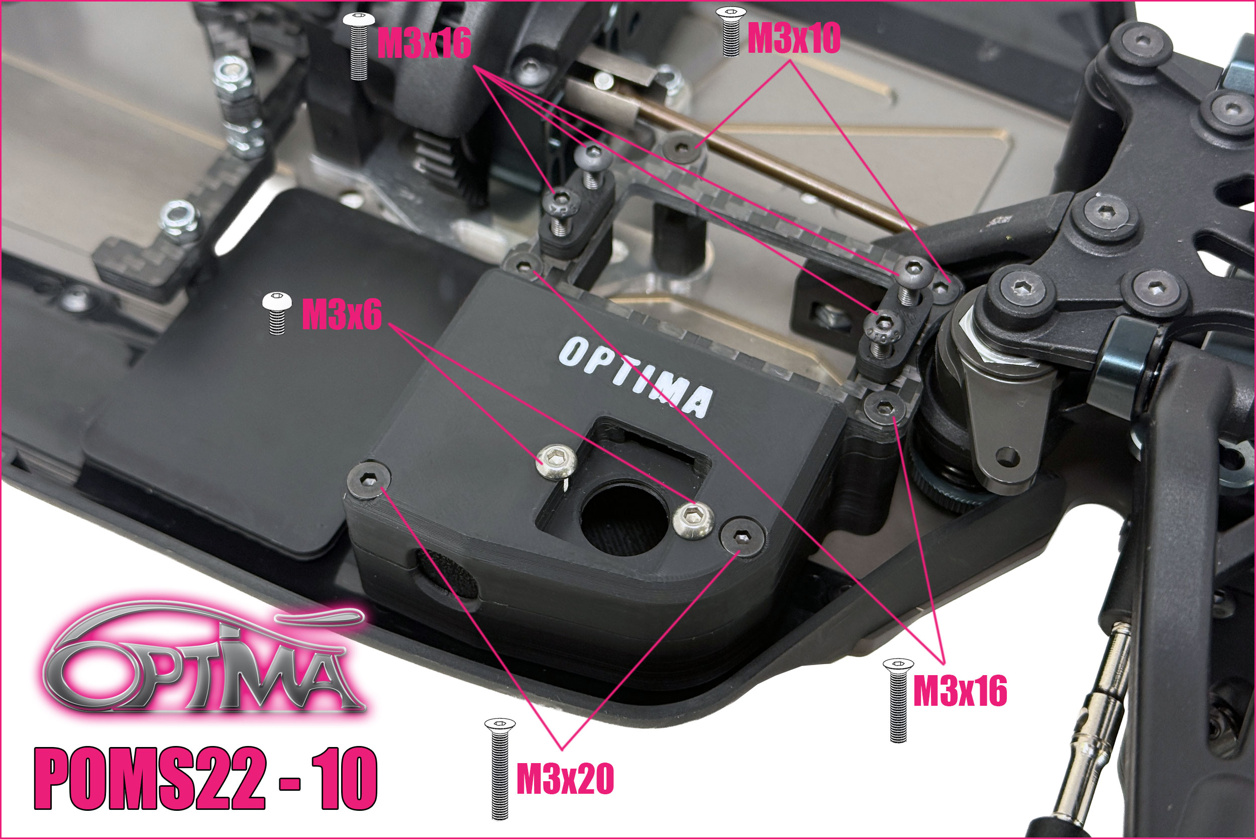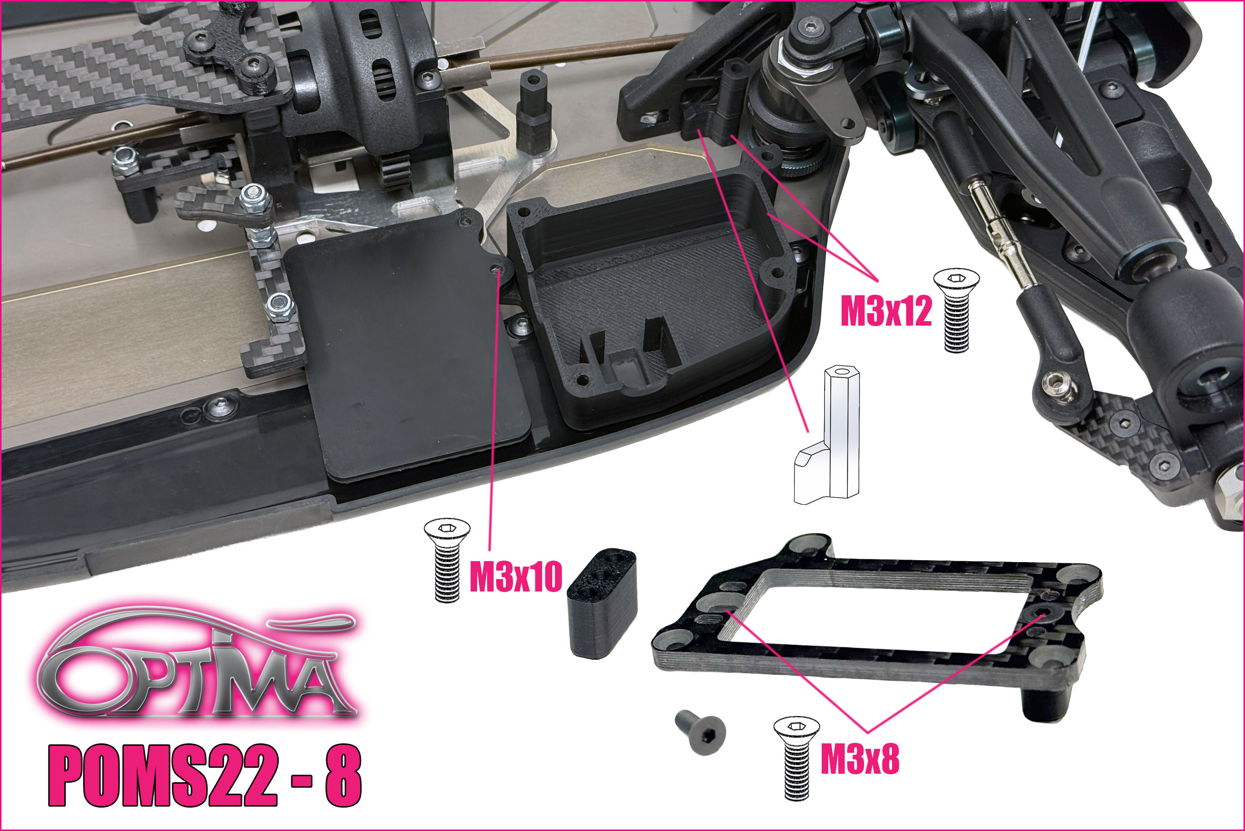 POMS22 – OPTIMA conversiekit voor “MID”-accu’s op MUGEN MBX8R-ECO. De complete set bevat: