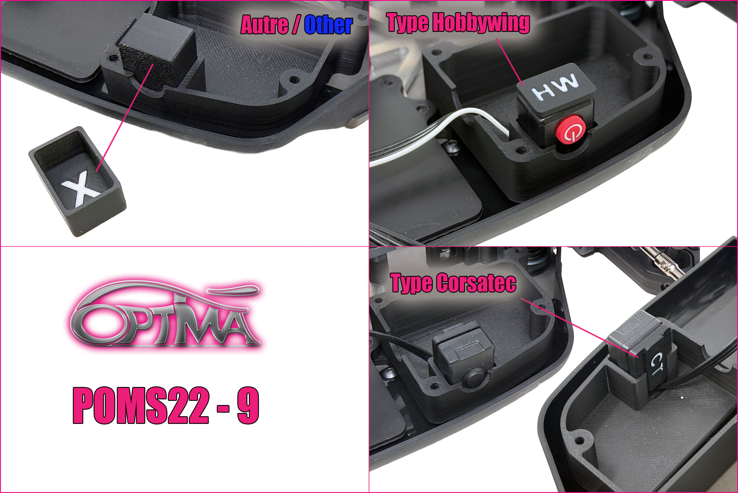 – Ontvangerbox met geïntegreerde transponder en schakelaars van het HOBBYWING- en CORSATEC-type. (Inclusief een afdekking voor gebruik met andere ESC-merken).