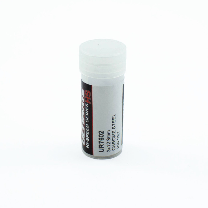 This is a set of 3×12.8mm Chrome Steel Pins from Ultimate Racing. It contains 10 pieces.
