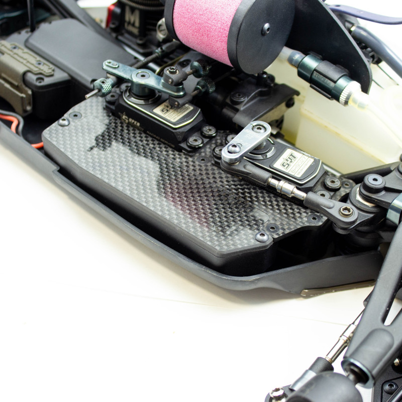 This is the optional Ultimate Racing Carbon Battery Box Cover intended for the Mugen MBX8R. Features: Made from 3mm thick 100% bright high density carbon fiber with same appearance