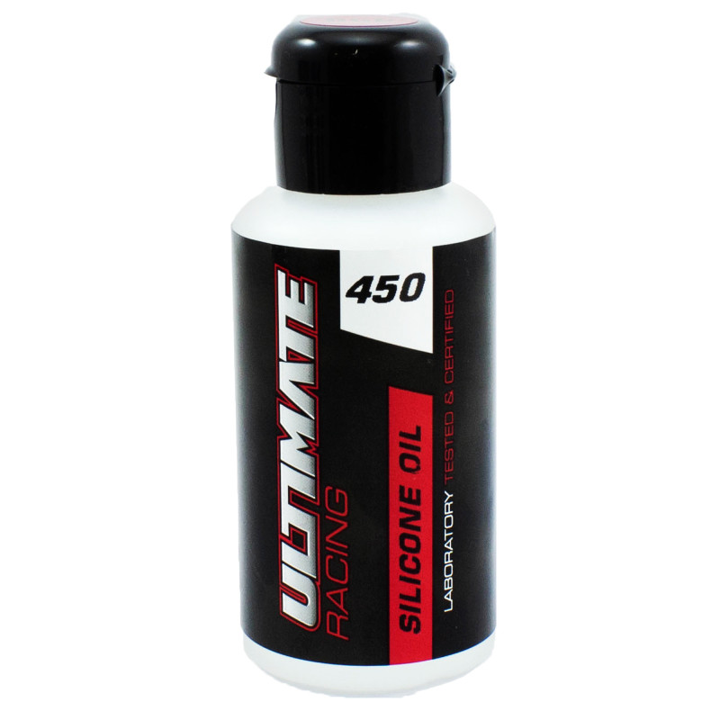 Shock Oil 450 CPS (75ml), Ultimate Racing shock oil is made from 100% pure silicone oil and will not thin out in hot weather or thicken up in cold weather.